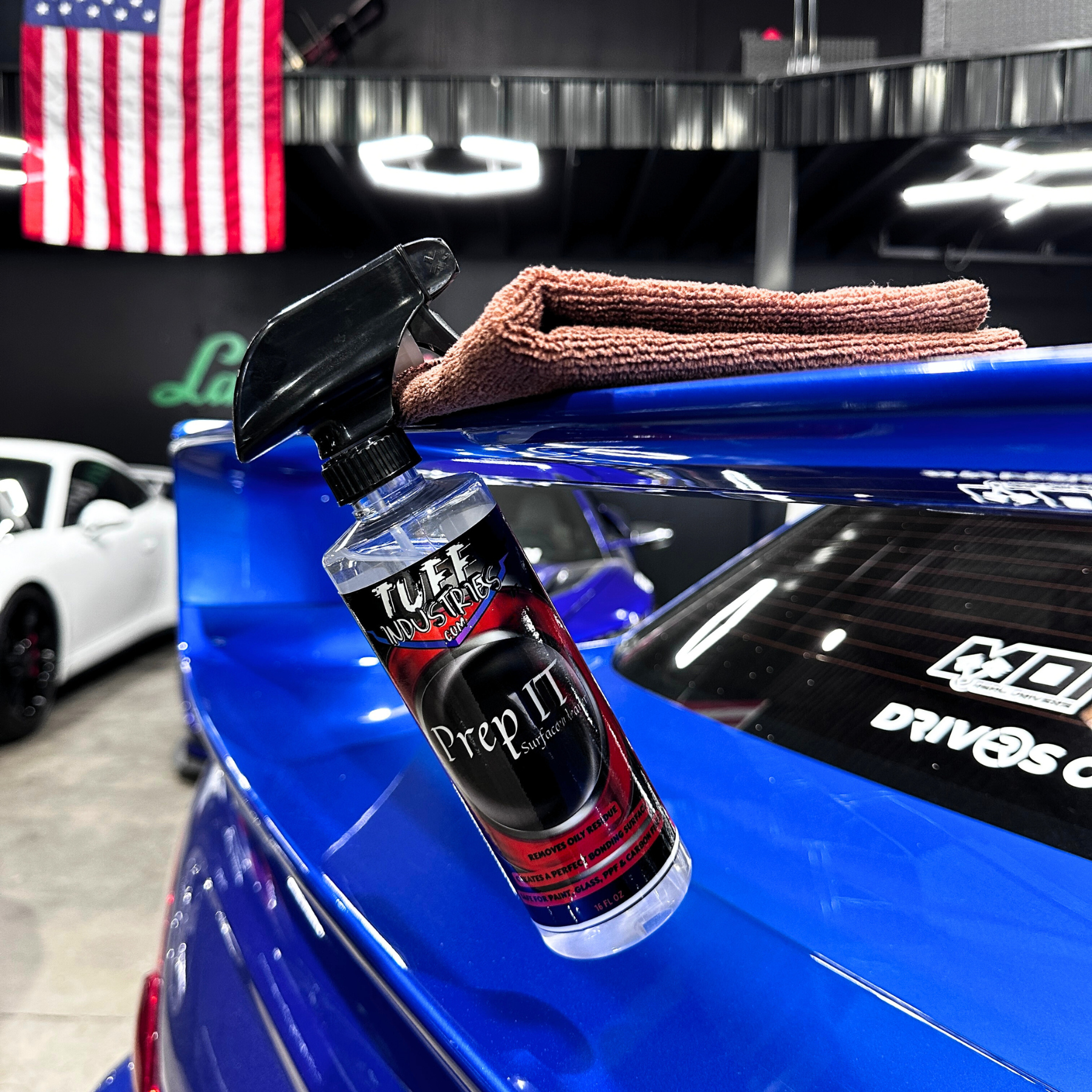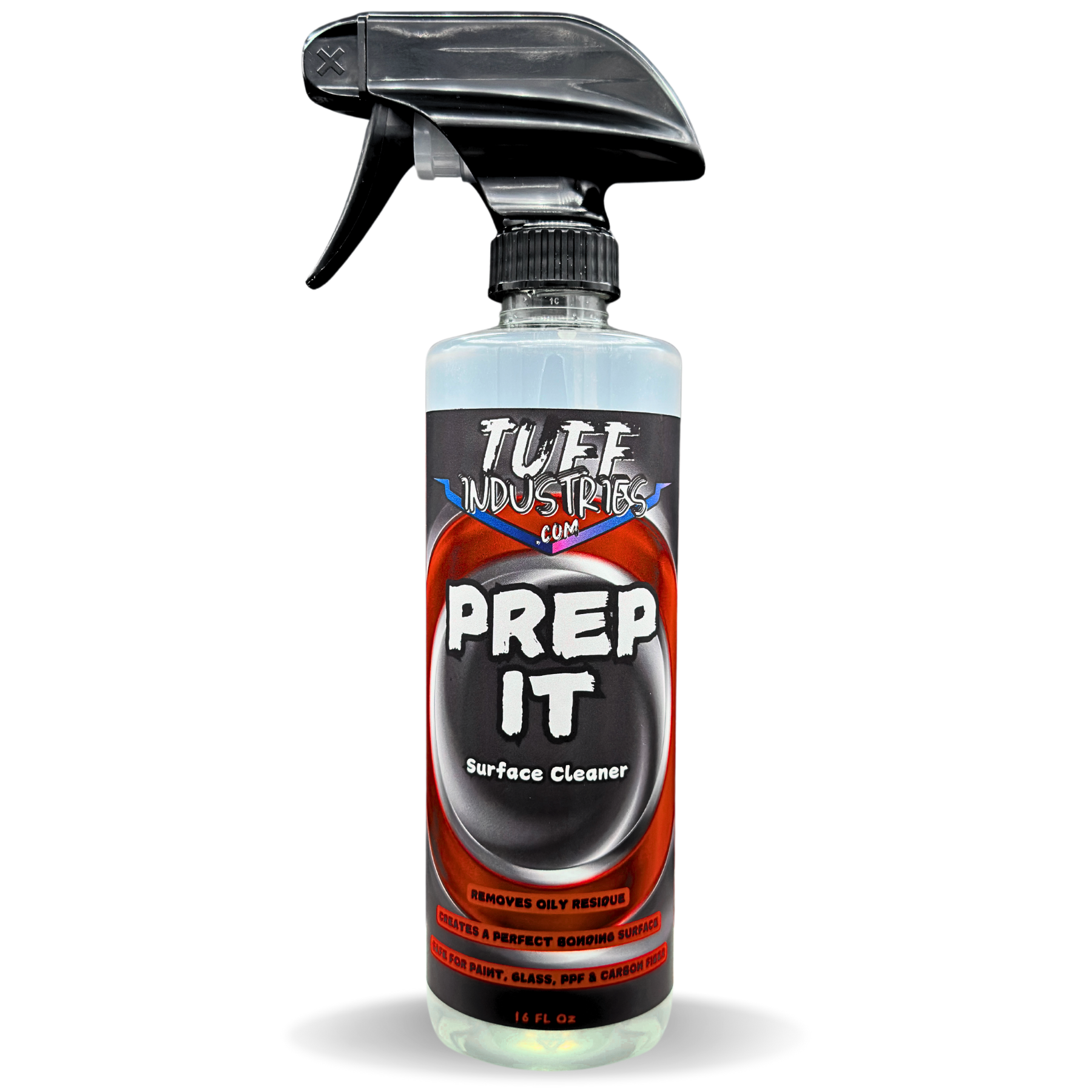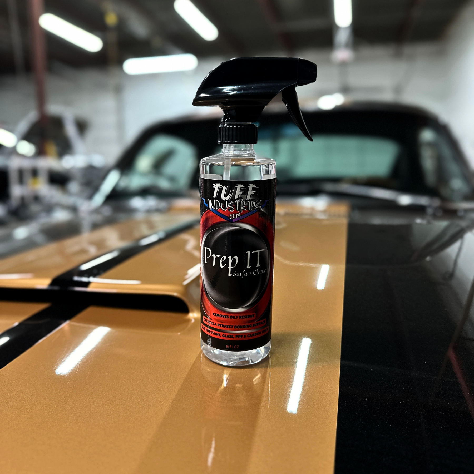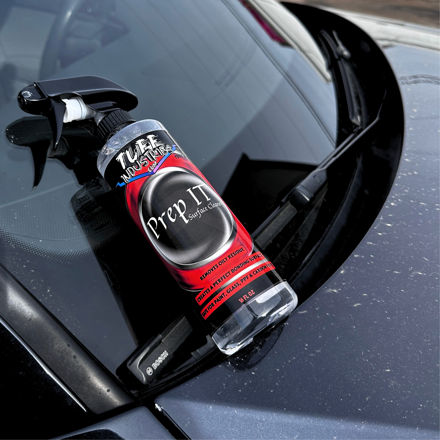 Prep IT is the ultimate premium surface cleaner designed to revolutionize the way you prepare your vehicle's exterior surfaces for coatings, sealants, vinyl wraps, and decals. This innovative solution is engineered to meticulously remove contaminants and oily residues, ensuring a pristine and receptive surface for any subsequent applications. Prep IT is an essential product to maximize the effectiveness and longevity of their vehicle's exterior treatments. Whether you're applying wax, a ceramic coating, a sealant or a vinyl wrap, the success of these applications starts with a clean surface.
