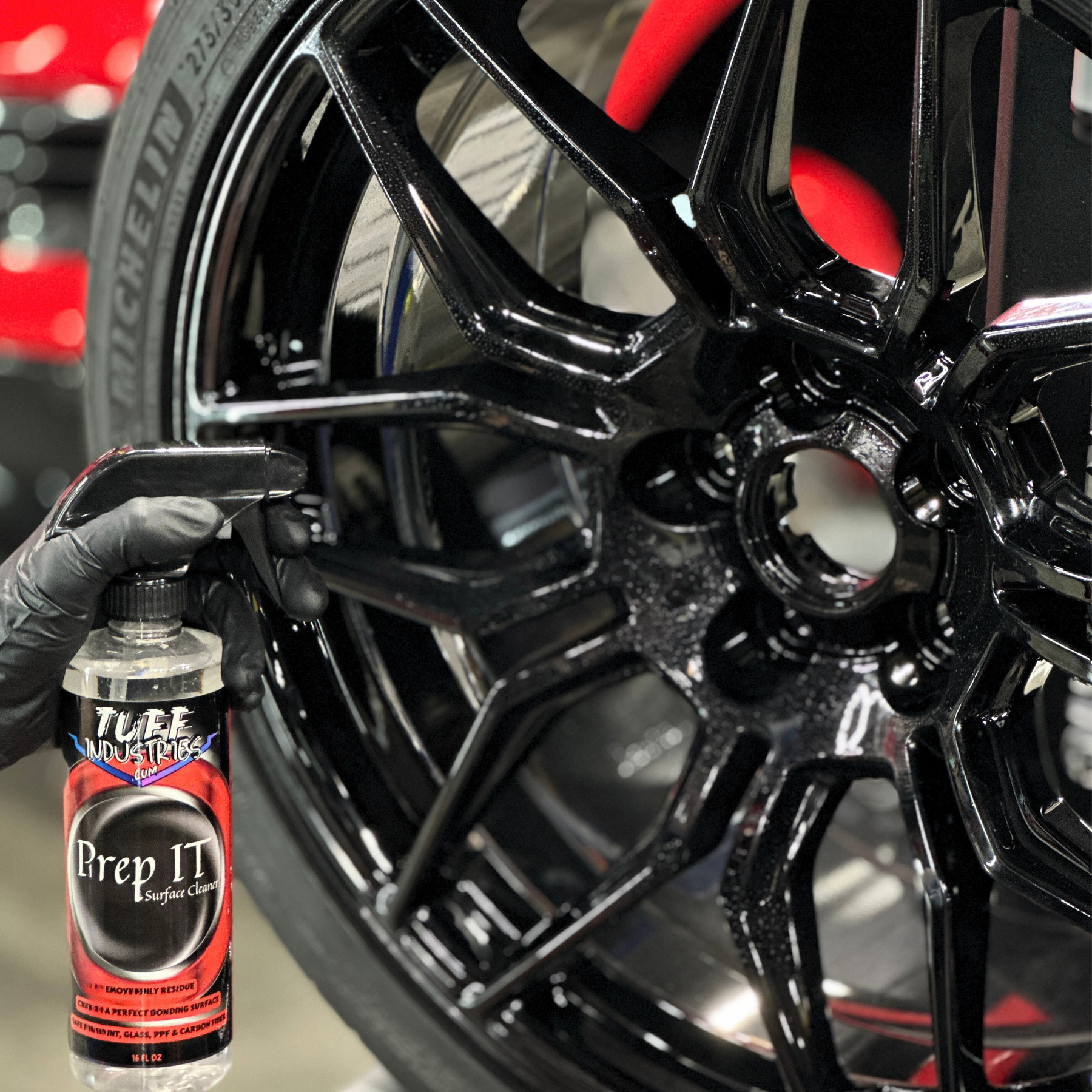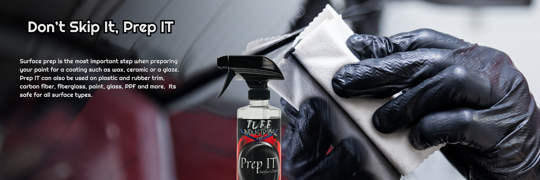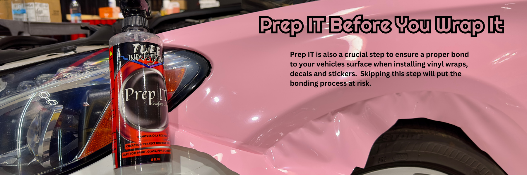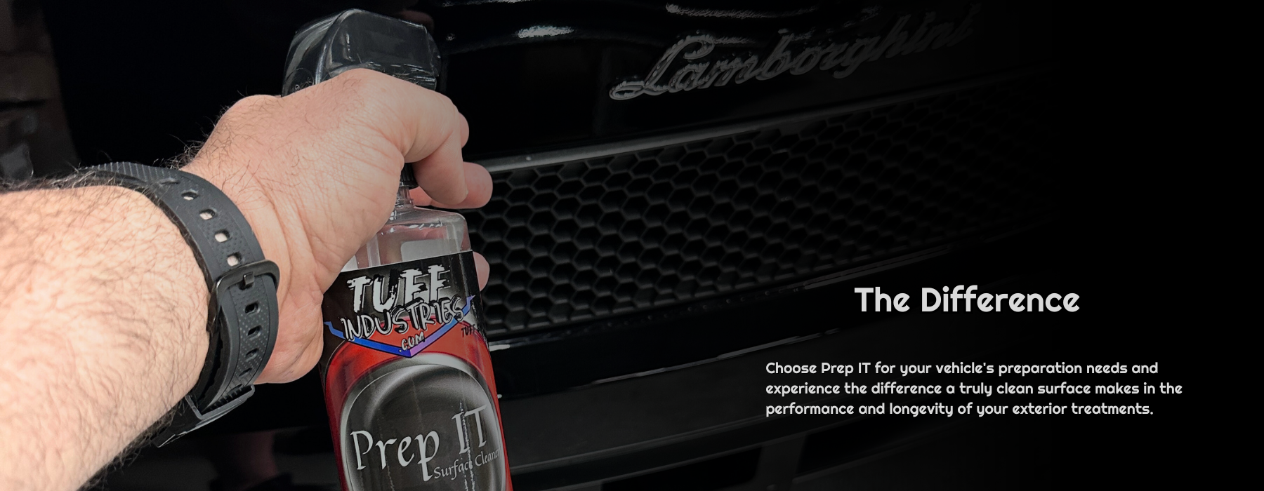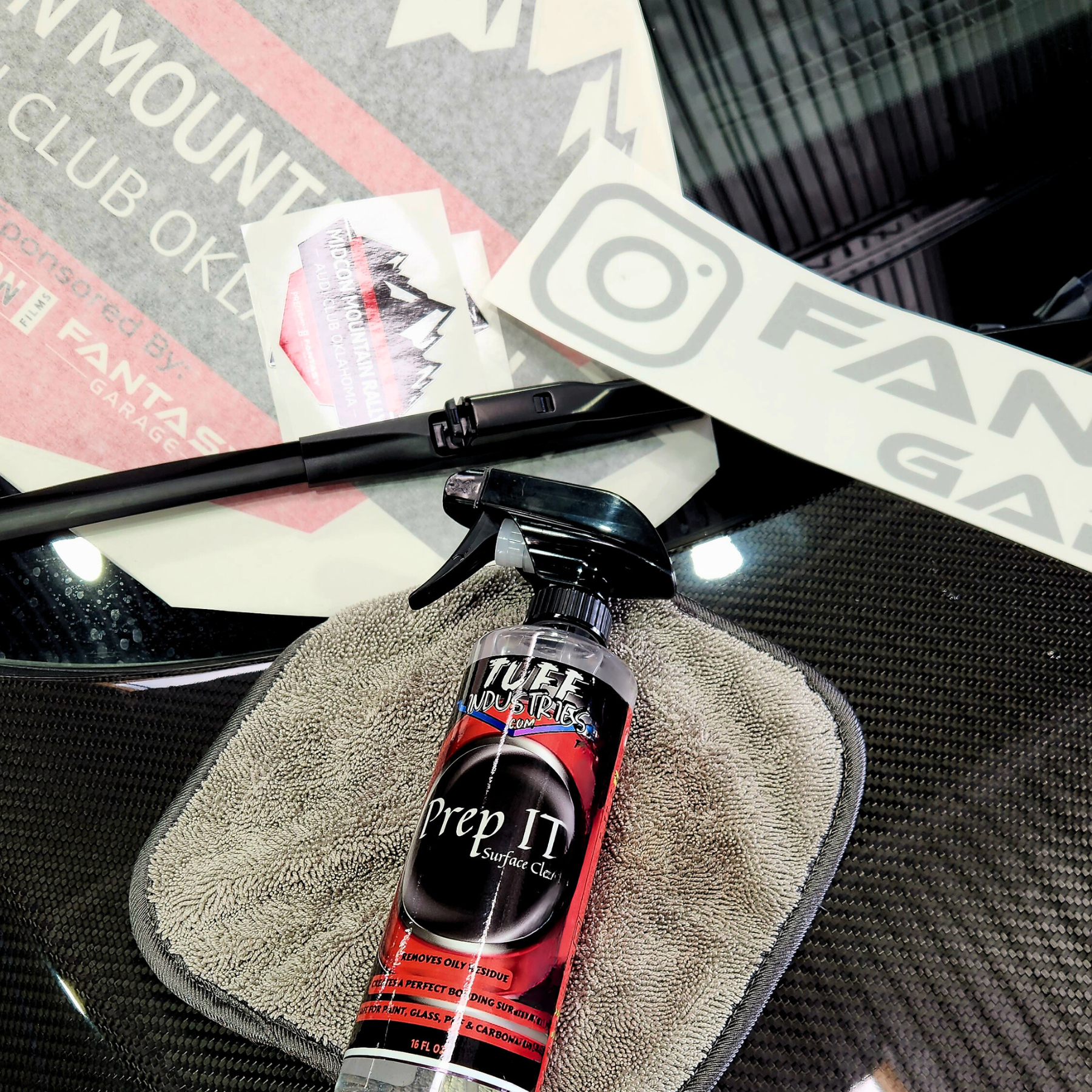 Prep IT is the ultimate premium surface cleaner designed to revolutionize the way you prepare your vehicle's exterior surfaces for coatings, sealants, vinyl wraps, and decals. This innovative solution is engineered to meticulously remove contaminants and oily residues, ensuring a pristine and receptive surface for any subsequent applications. Prep IT is an essential product to maximize the effectiveness and longevity of their vehicle's exterior treatments. Whether you're applying wax, a ceramic coating, a sealant or a vinyl wrap, the success of these applications starts with a clean surface.