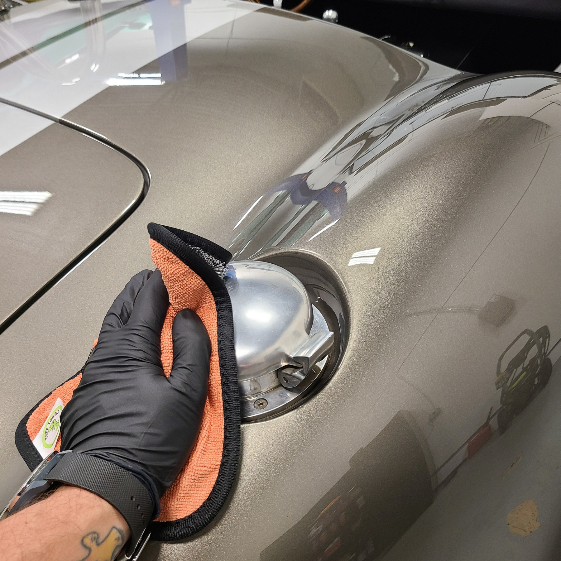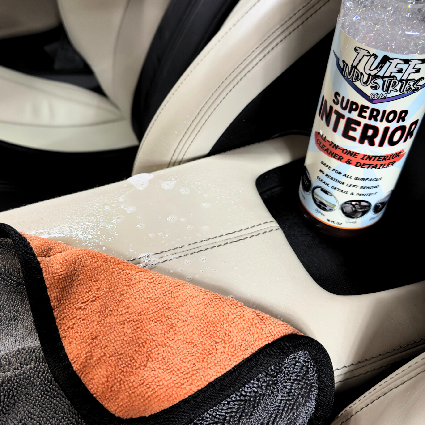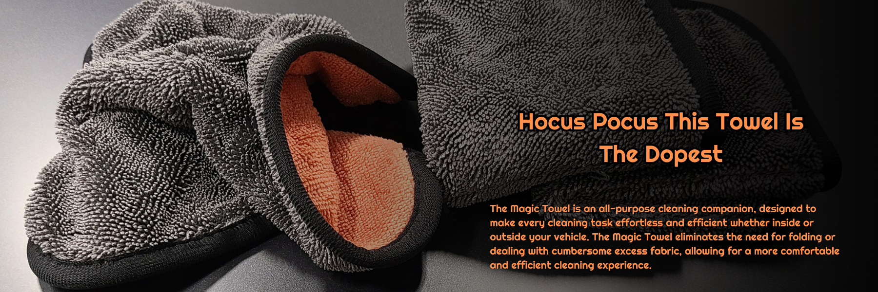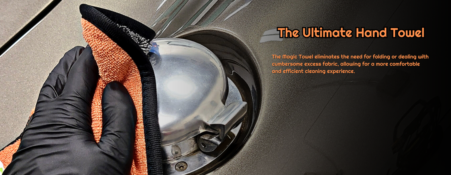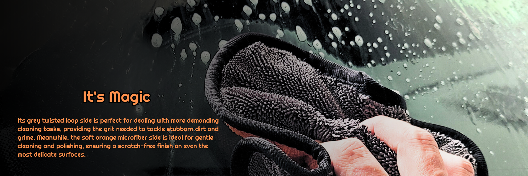 The Magic Towel is an all-purpose cleaning companion, designed to make every cleaning task effortless and efficient whether inside or outside your vehicle. The Magic Towel eliminates the need for folding or dealing with cumbersome excess fabric, allowing for a more comfortable and efficient cleaning experience. This innovative towel transcends the ordinary with its unique dual-sided design, featuring a grey twisted loop on one side and a soft orange microfiber weave on the other, providing versatility and effectiveness in every wipe.
