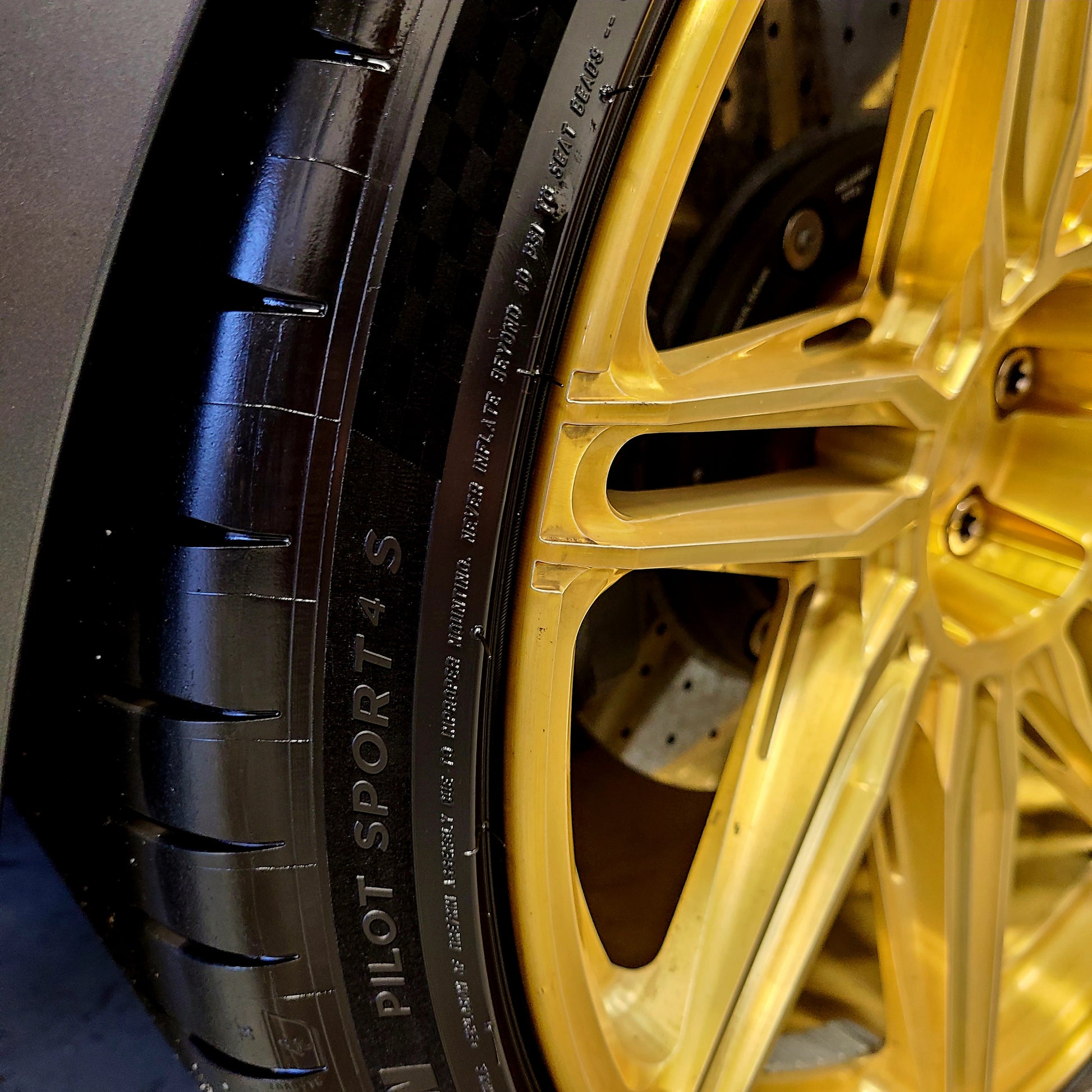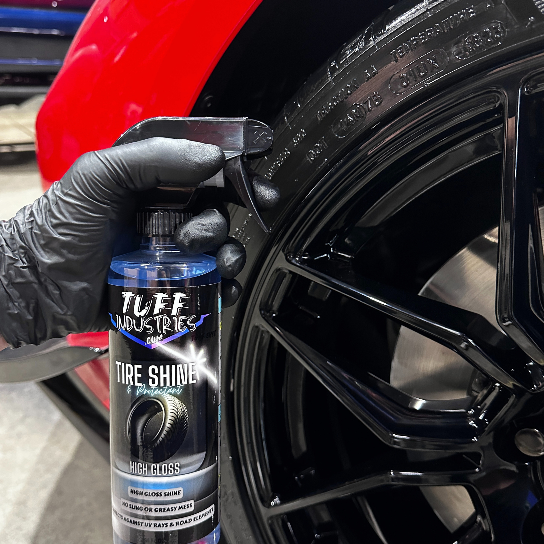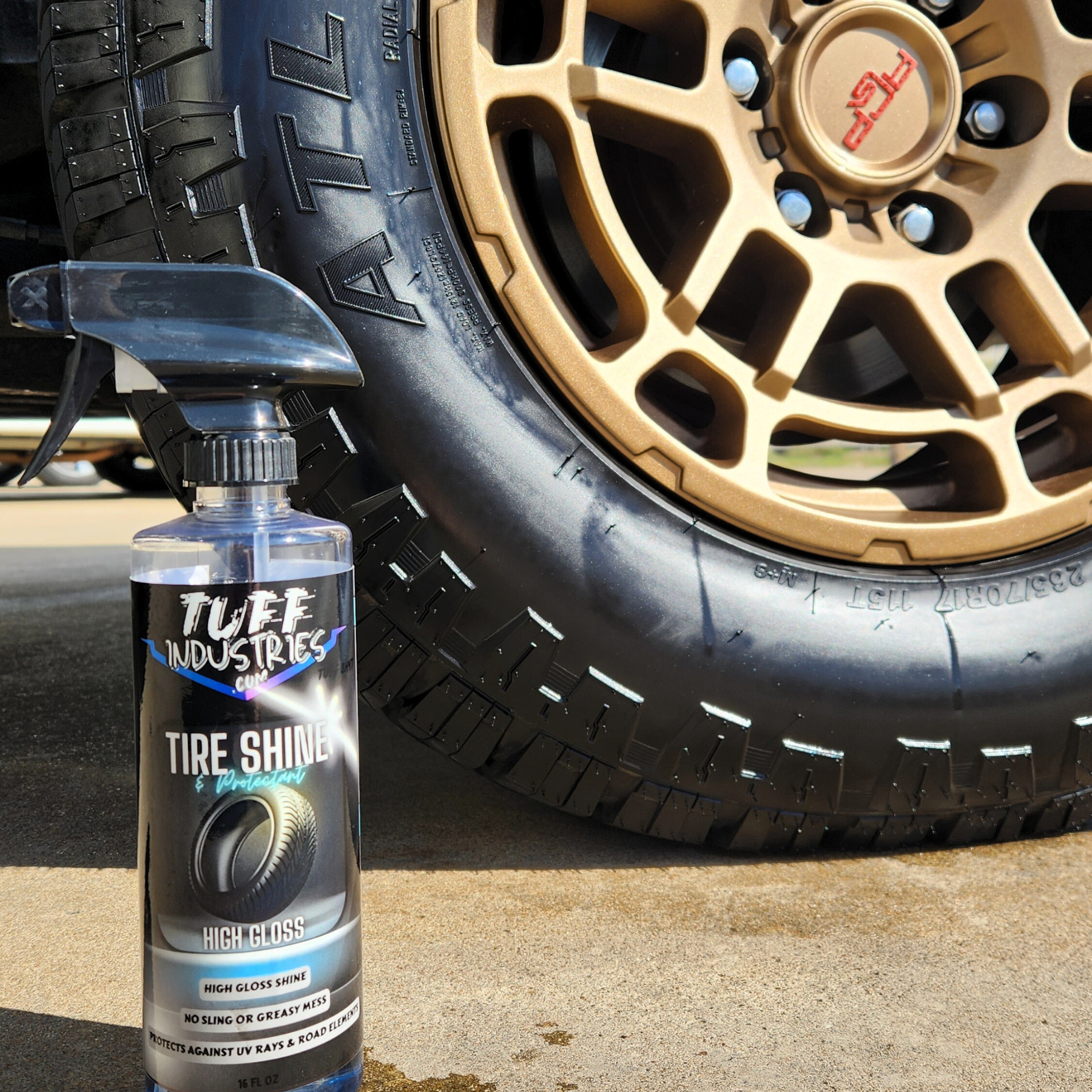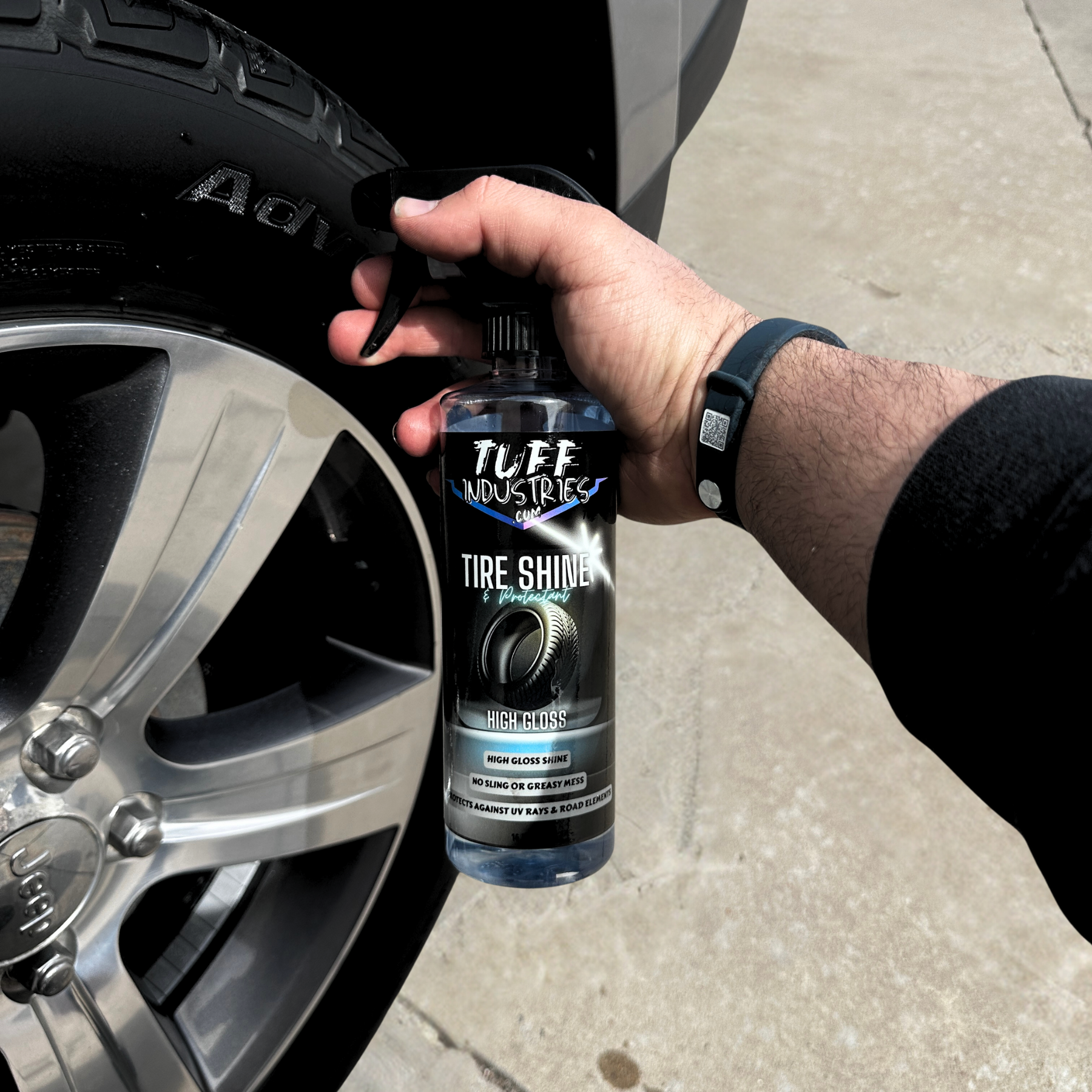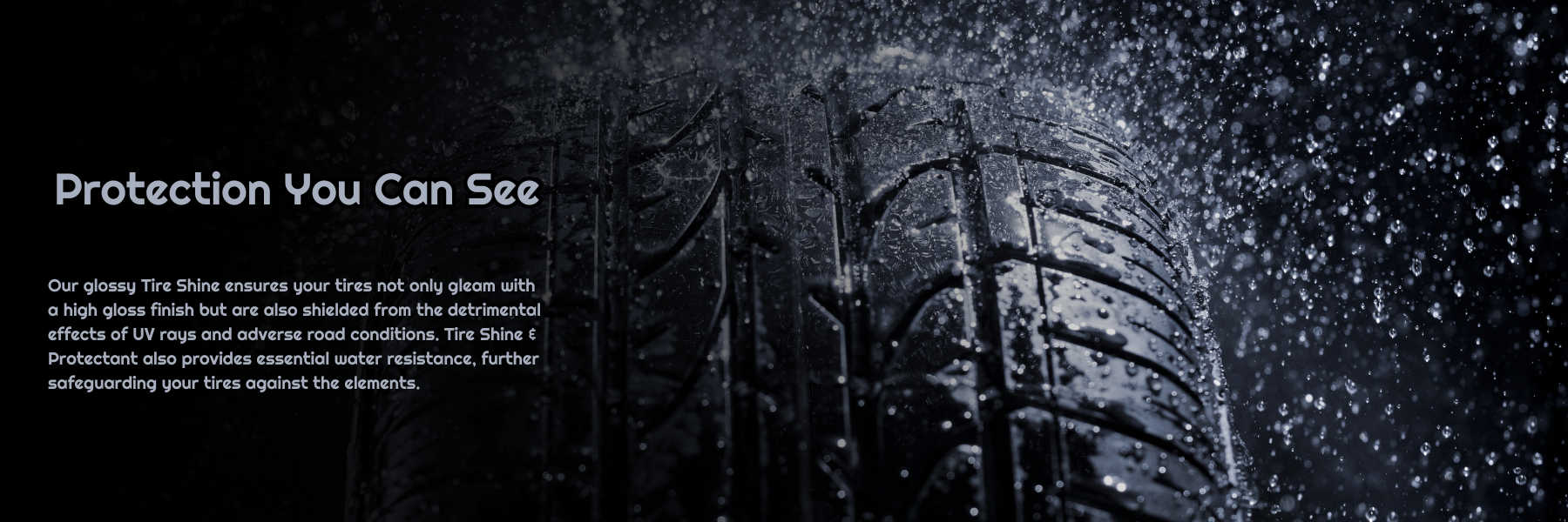 Step up your tire care game with Tire Shine & Protectant, the ultimate solution for achieving that enviable deep, wet look on your tires while providing them with unparalleled protection. Our glossy Tire Shine ensures your tires not only gleam with a high gloss finish but are also shielded from the detrimental effects of UV rays and adverse road conditions. Tire Shine & Protectant also provides essential water resistance, further safeguarding your tires against the elements. For an enhanced gloss level, additional layers can be applied, allowing you to customize the shine to your preference.