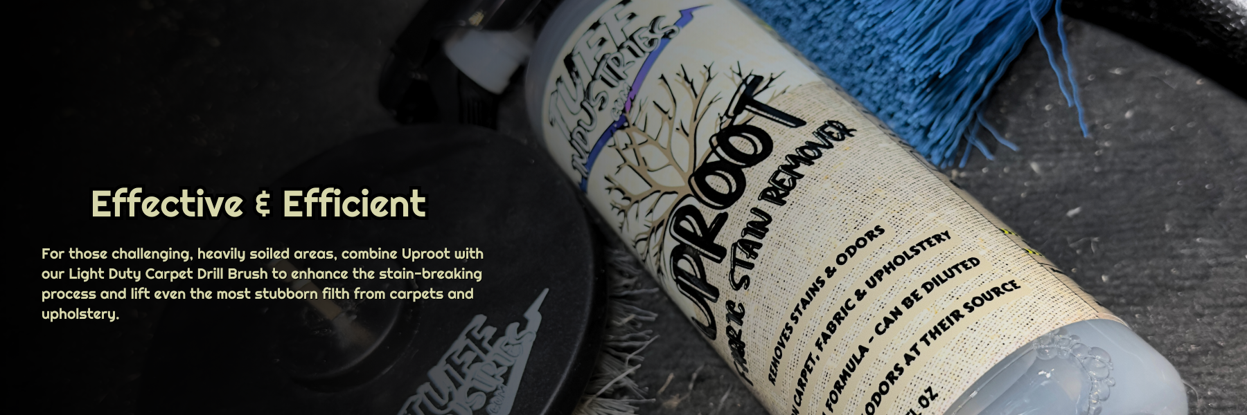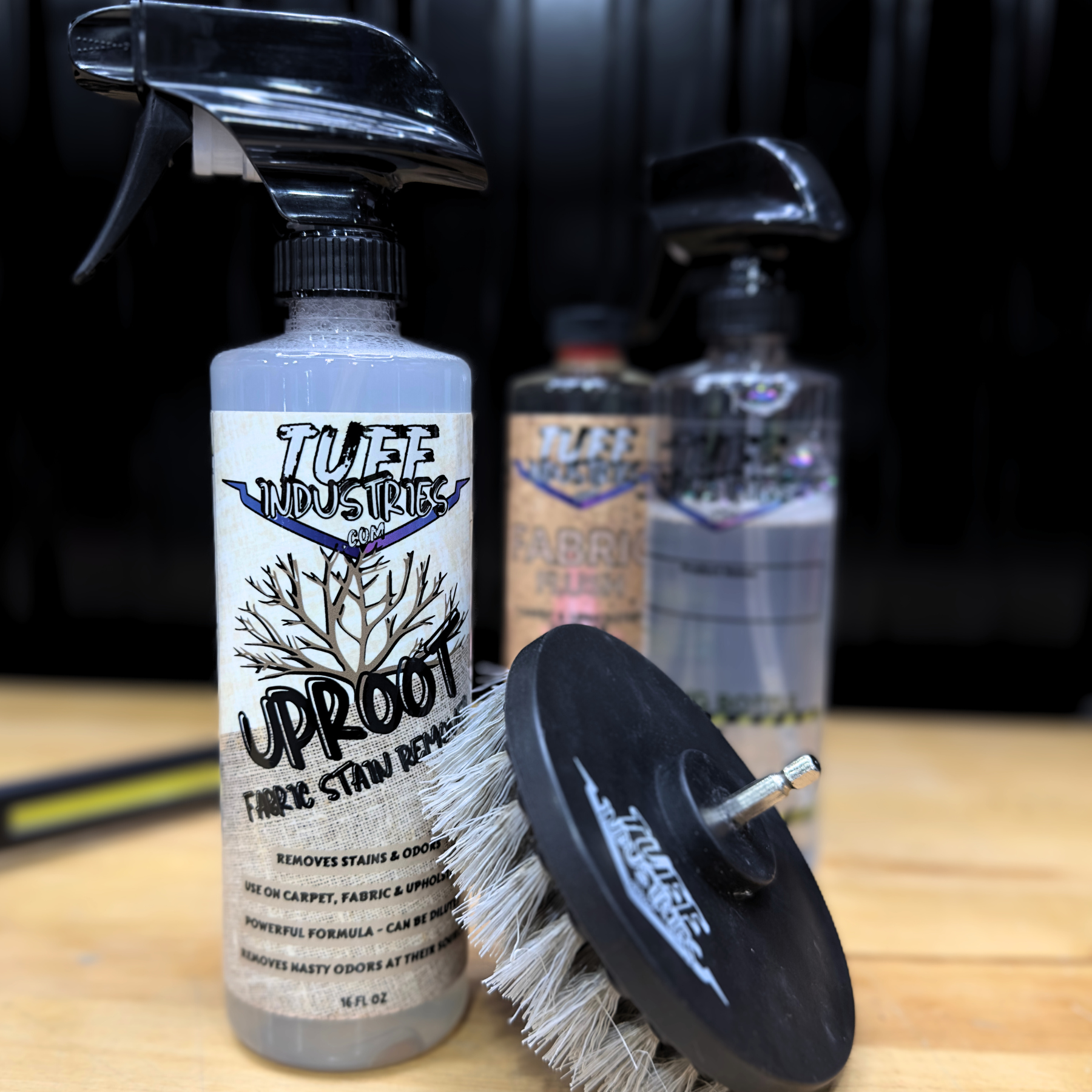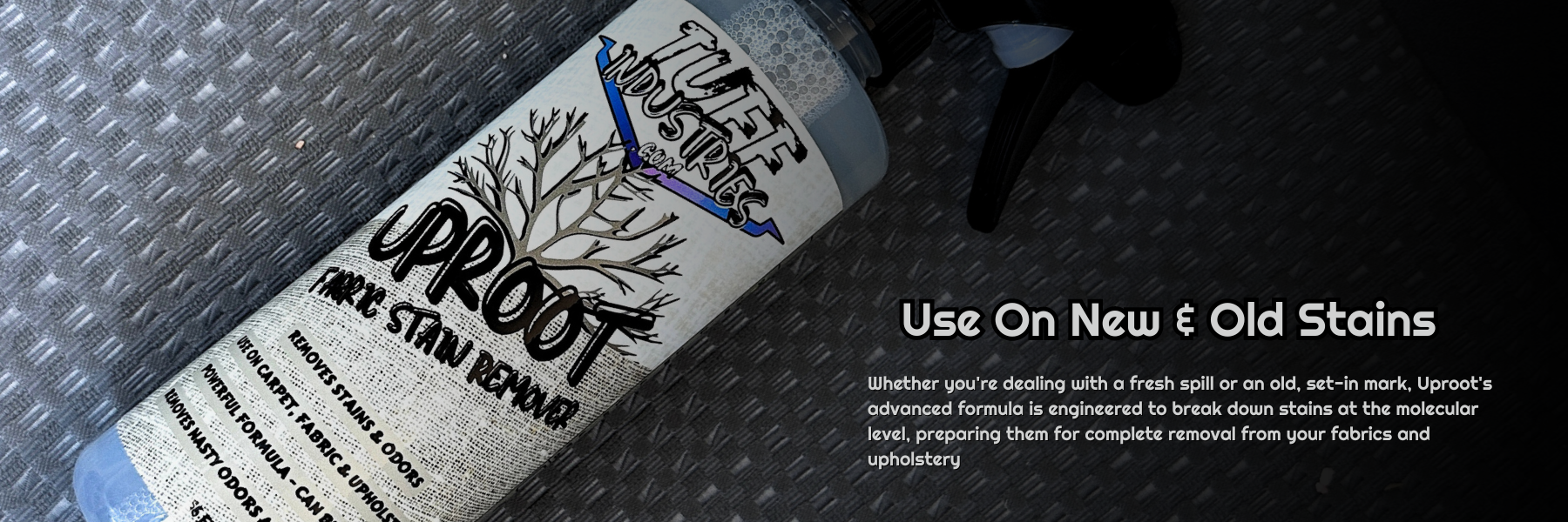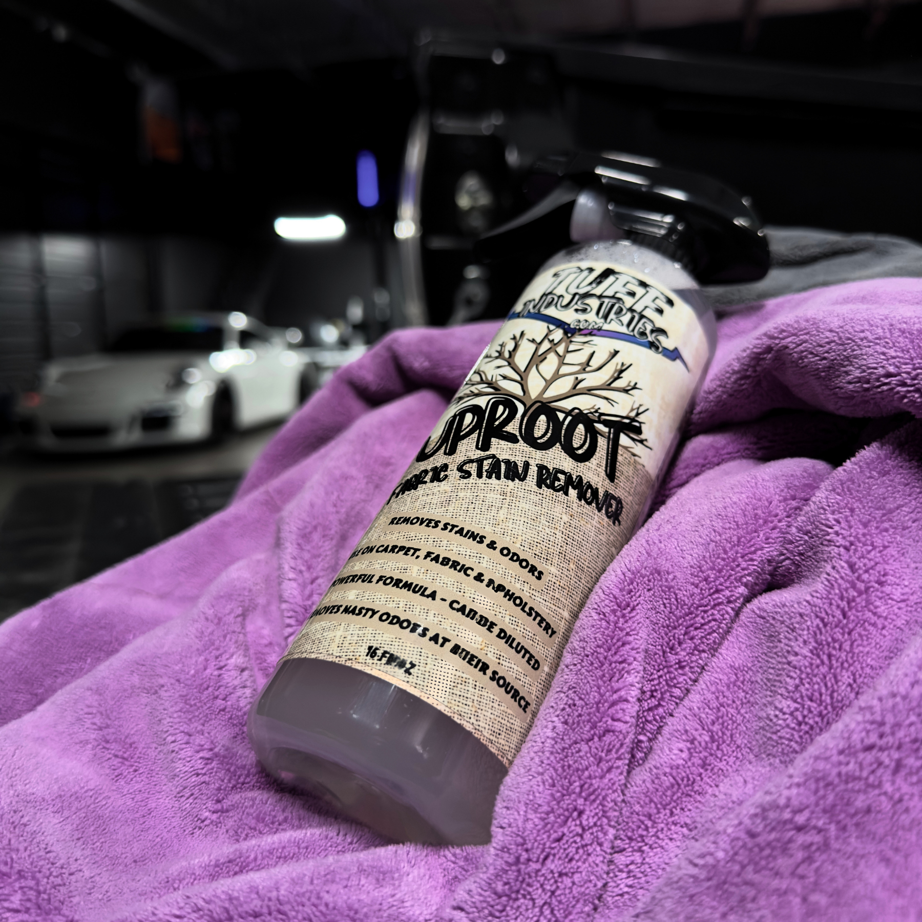 Uproot, the ultimate fabric and upholstery stain remover designed to conquer the most stubborn stains on any fabric surface. Whether you're dealing with a fresh spill or an old, set-in mark, Uproot's advanced formula is engineered to break down stains at the molecular level, preparing them for complete removal from your fabrics and upholstery. Uproot arrives ready to tackle any challenge straight out of the bottle at full strength, yet offers the flexibility to be diluted, allowing you to maximize the product's longevity without sacrificing effectiveness.