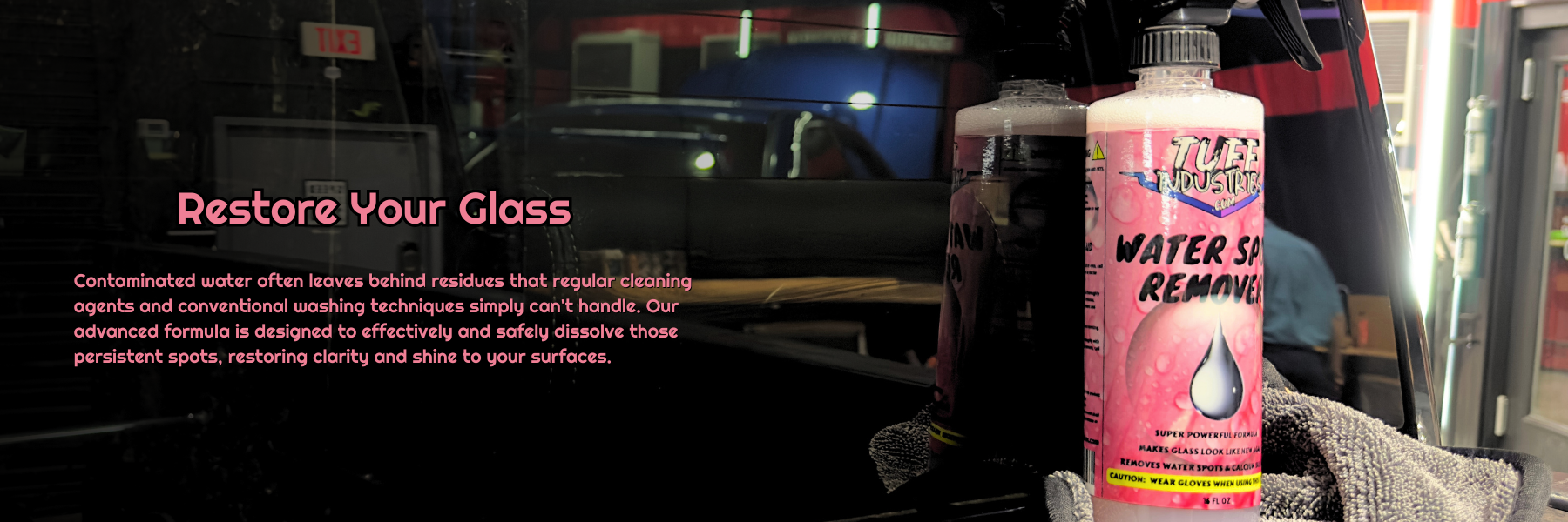 Water Spot Remover is a premium solution expertly crafted to tackle and eliminate unsightly water spots and stains from glass and painted surfaces. Contaminated water often leaves behind residues that regular cleaning agents and conventional washing techniques simply can't handle. Our advanced formula is designed to effectively and safely dissolve those persistent spots, restoring clarity and shine to your surfaces.