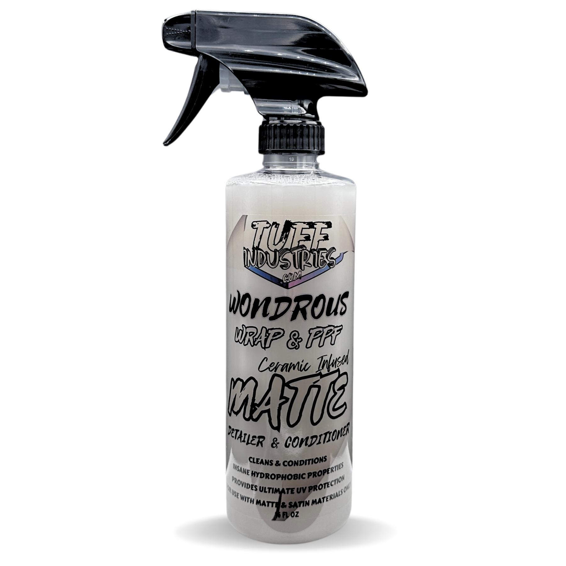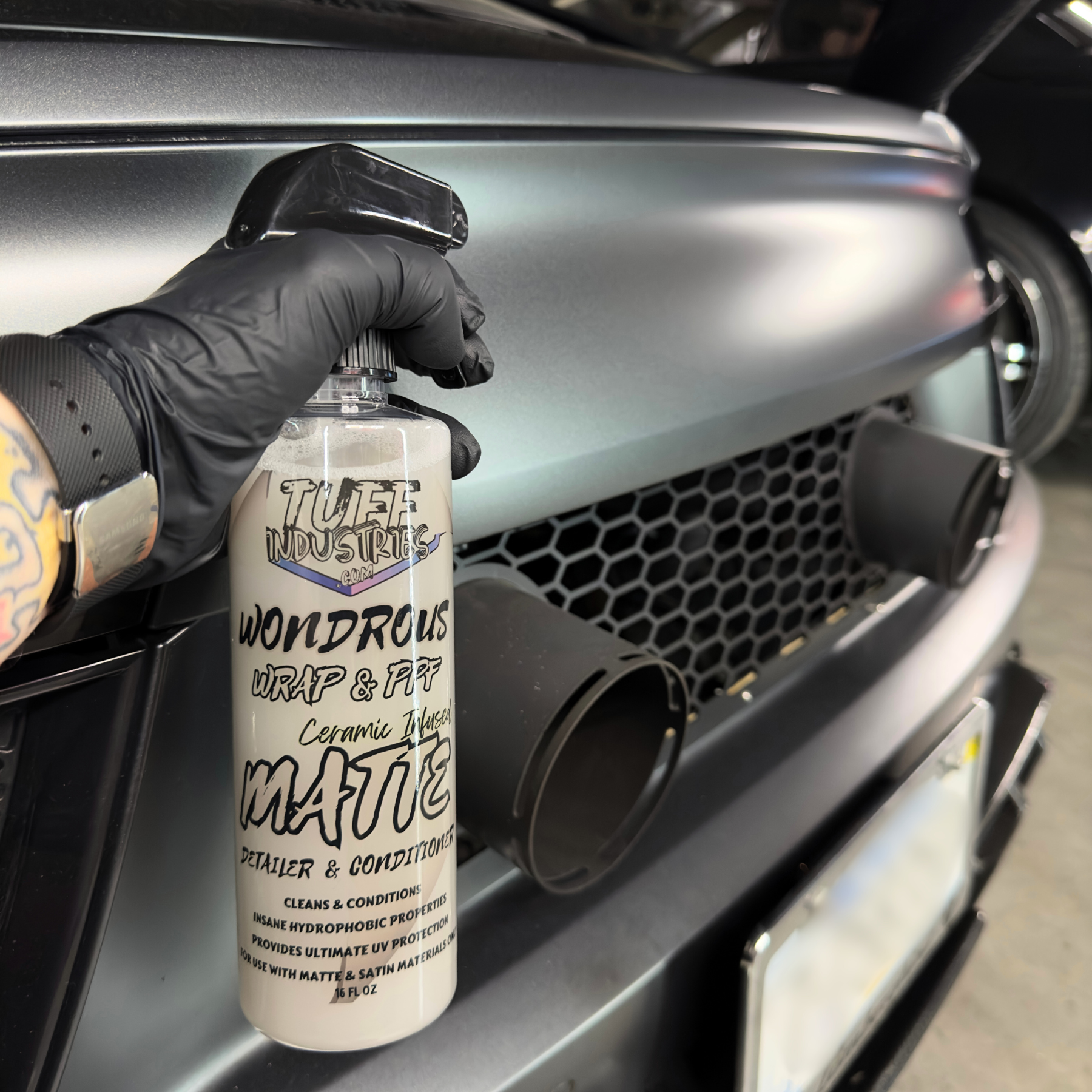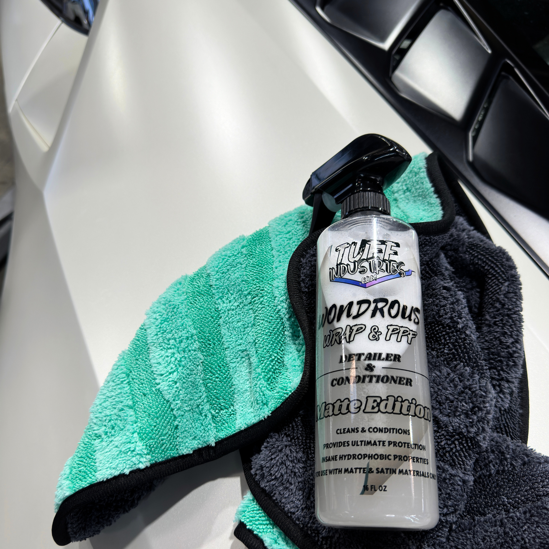 Our Wonderous Wrap & PPF products take wrap care to new heights. Our MATTE Edition spray is designed to maintain and protect the unique appeal of your matte and satin vinyl wraps, PPF, and decals. This innovative ceramic infused conditioner detail spray is a comprehensive care formula that offers unparalleled protection and conditioning for your vinyl investments. Our advanced formula is packed with UV blockers, vinyl conditioners, and hydrophobic properties, ensuring your wrap stay protected against the elements without compromising its distinctive matte or satin finish.
