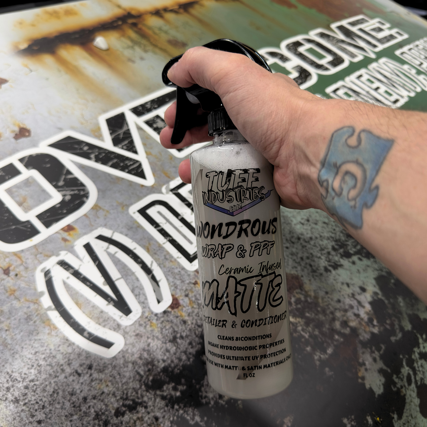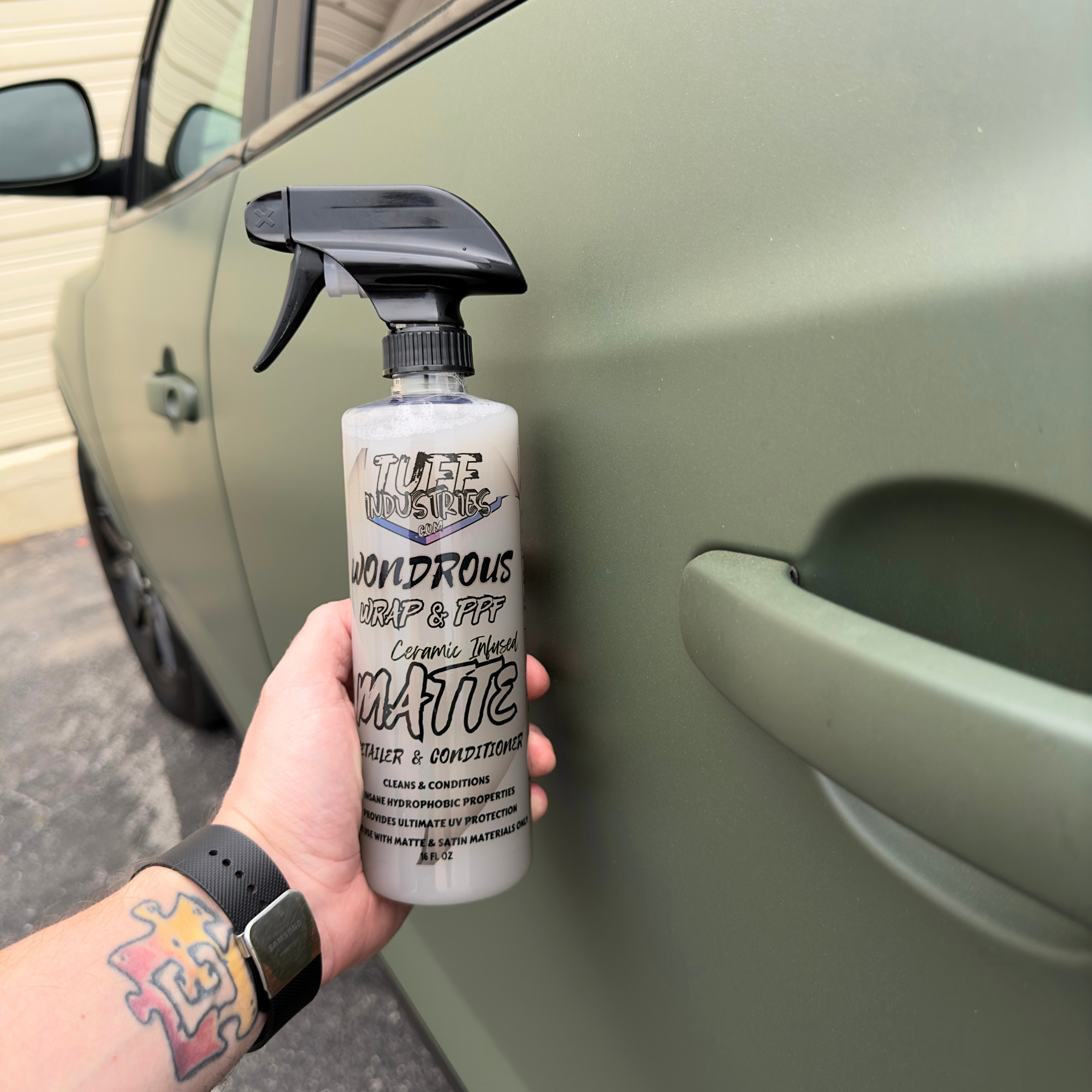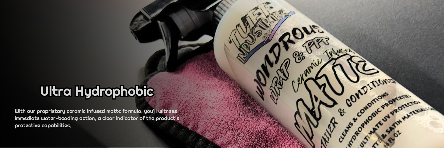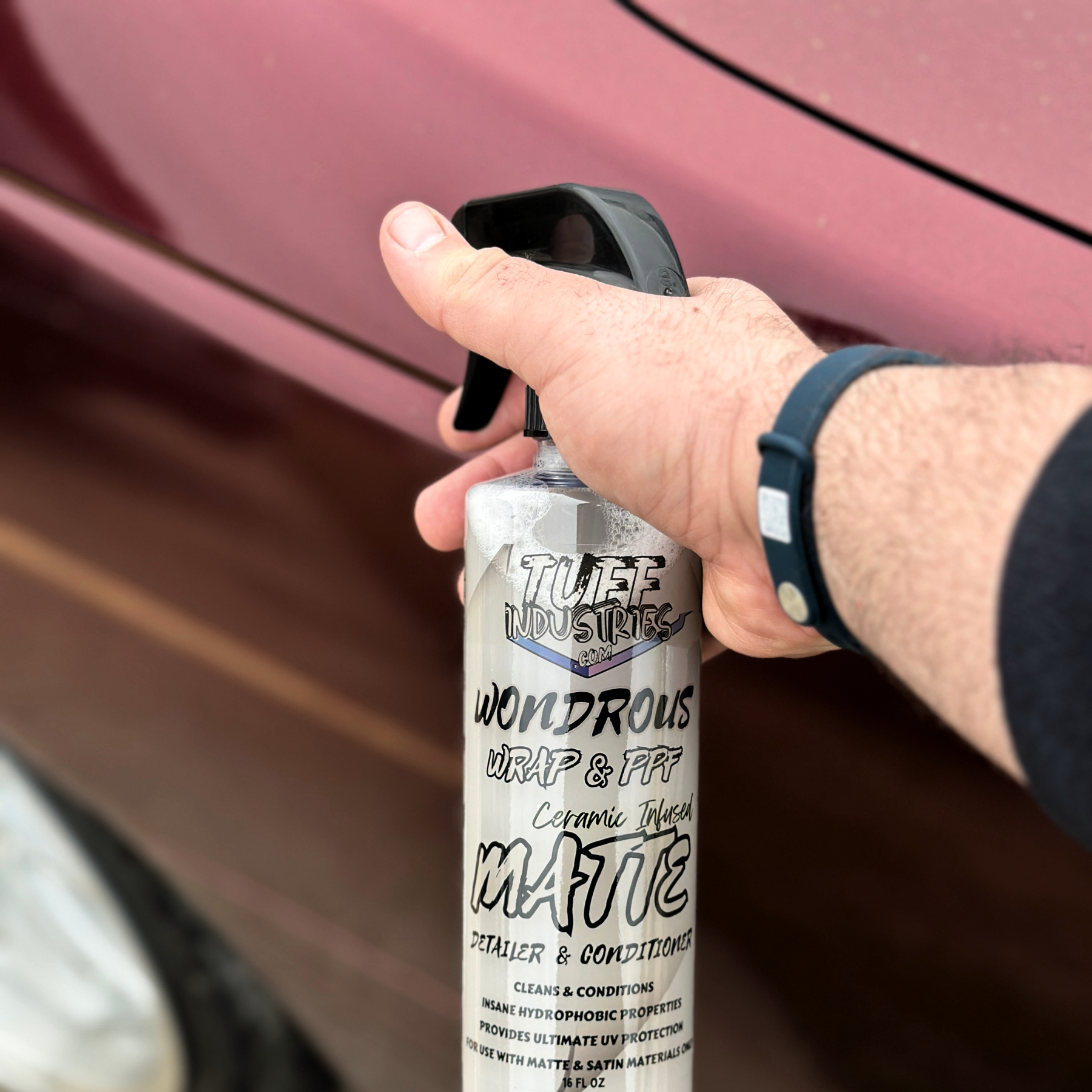 Our Wonderous Wrap & PPF products take wrap care to new heights. Our MATTE Edition spray is designed to maintain and protect the unique appeal of your matte and satin vinyl wraps, PPF, and decals. This innovative ceramic infused conditioner detail spray is a comprehensive care formula that offers unparalleled protection and conditioning for your vinyl investments. Our advanced formula is packed with UV blockers, vinyl conditioners, and hydrophobic properties, ensuring your wrap stay protected against the elements without compromising its distinctive matte or satin finish.